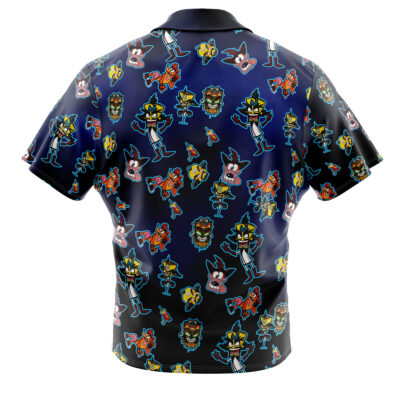 Crash and Dr Neo Pattern Crash Bandicoot Button Up Hawaiian Shirt