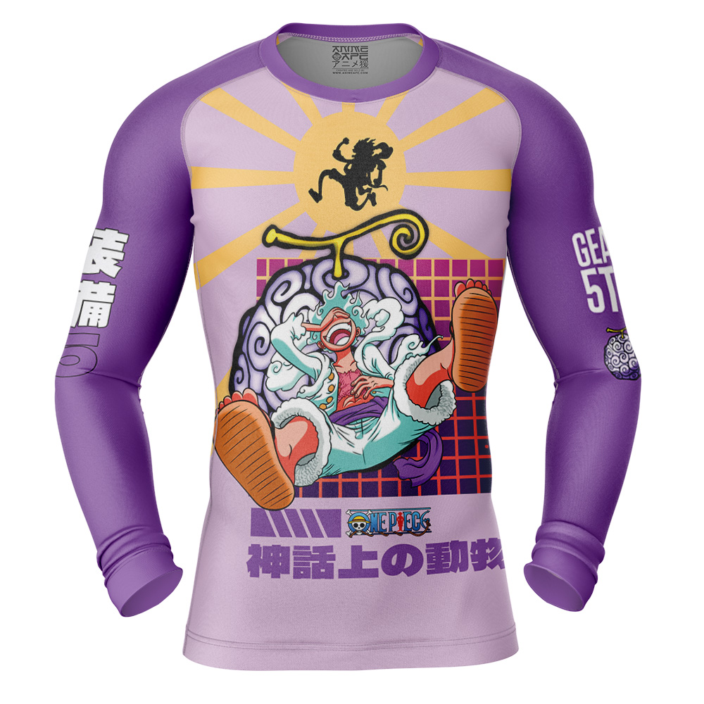 Luffy Gear 5 Sun God Nika v2 One Piece Long Sleeve Rash Guard Compression Shirt