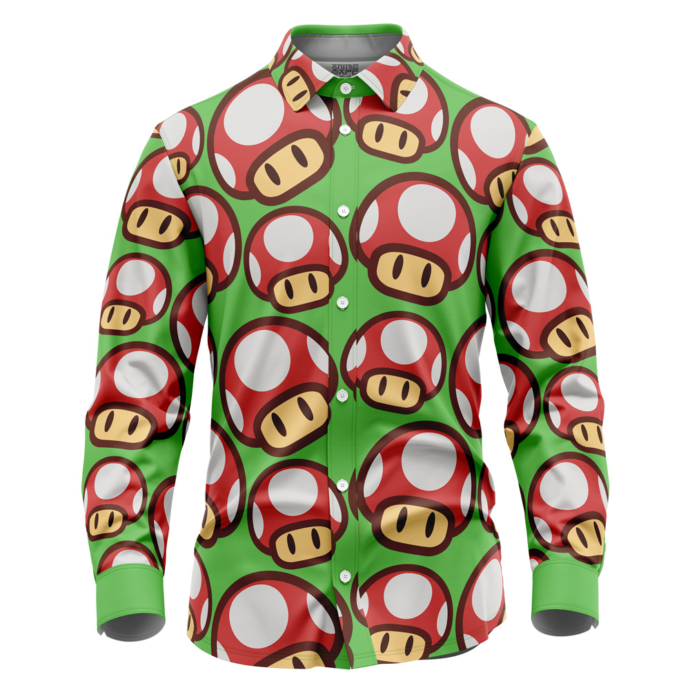 Mushroom Mario Bros Long Sleeve Button Up Shirt