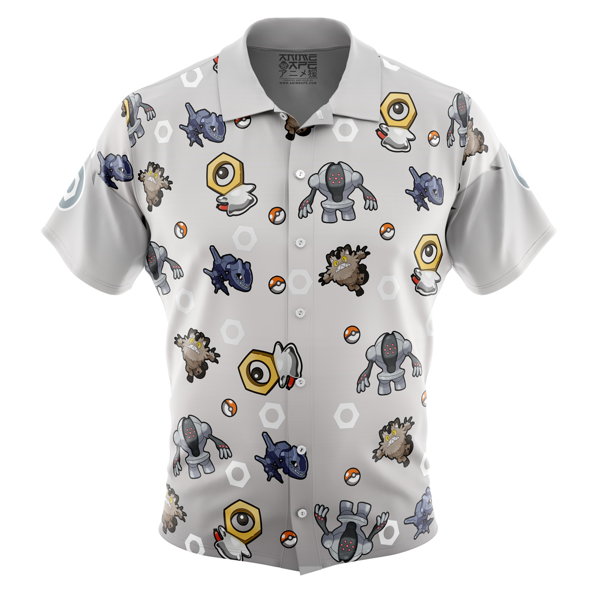 Steel Type Pattern Pokemon Button Up Hawaiian Shirt