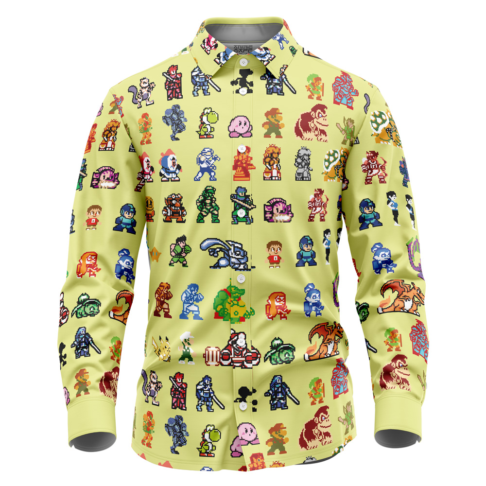 Ultimate Roster Super Smash Bros Long Sleeve Button Up Shirt